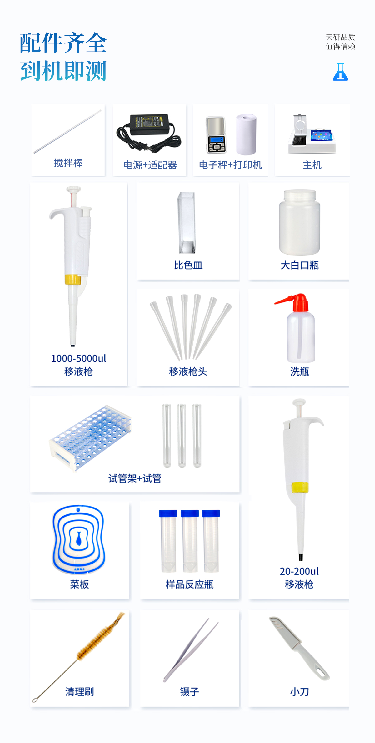 產(chǎn)品介紹:多功能食品安全檢測儀可快速檢測200多項(xiàng)目,包含非食用化學(xué)物質(zhì)、濫用食品添加劑、農(nóng)藥殘留、獸藥殘留、重金屬、病害肉、營養(yǎng)強(qiáng)化劑、抗生素類殘留、激素類殘留、真菌毒素類殘留、化學(xué)類殘留等現(xiàn)場的定性定量檢測。該多功能食品安全檢測儀為集成化食品安全快速檢測分析設(shè)備,廣泛應(yīng)用于市場監(jiān)管局、檢測中心、衛(wèi)生