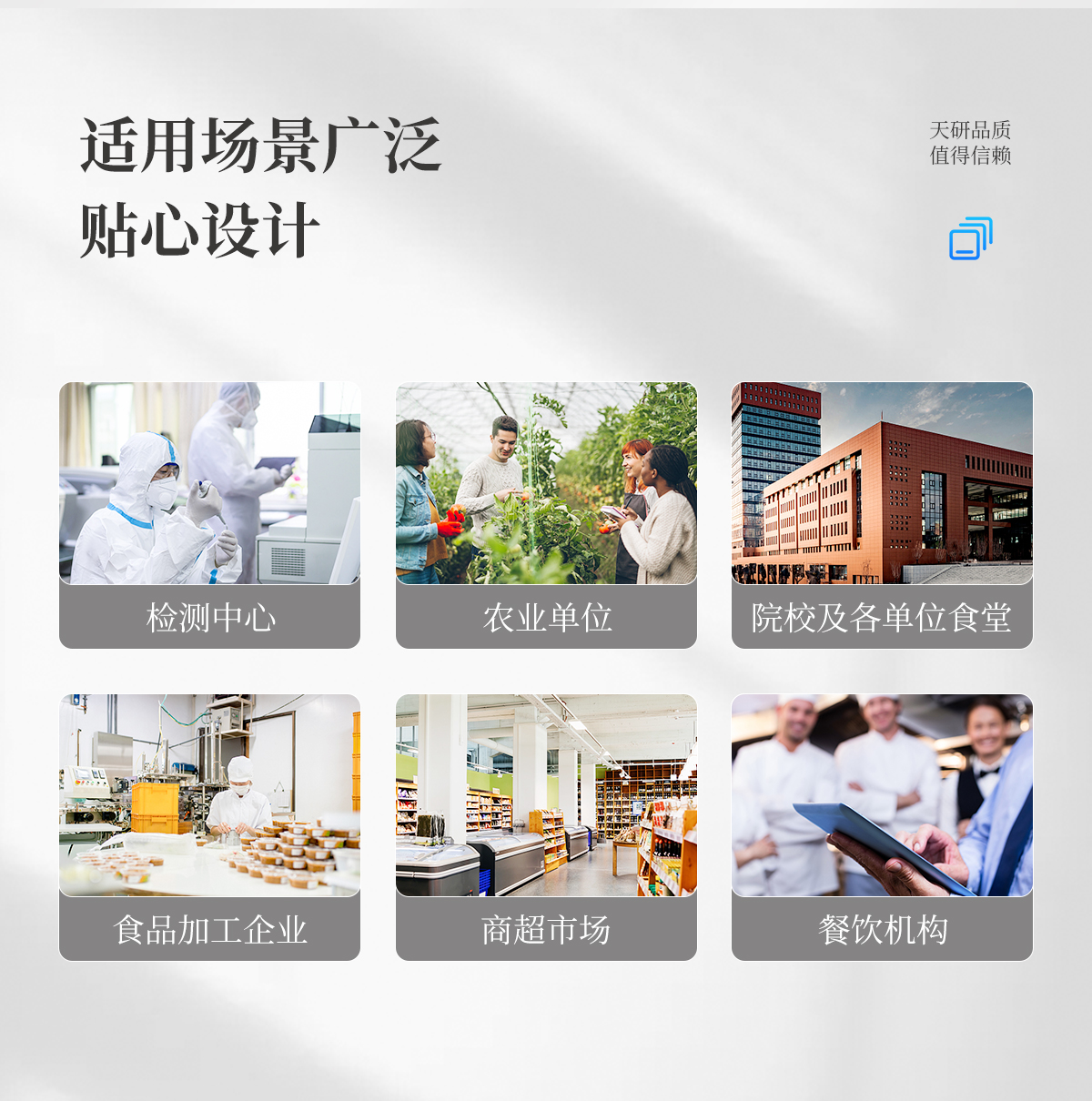 該多功能食品安全檢測儀為集成化食品安全快速檢測分析設(shè)備,廣泛應(yīng)用于市場監(jiān)管局、食品肉產(chǎn)品深加工企業(yè)、學(xué)校食堂、衛(wèi)生部門、畜牧部門、屠宰場、檢驗(yàn)檢疫部門等單位使用。