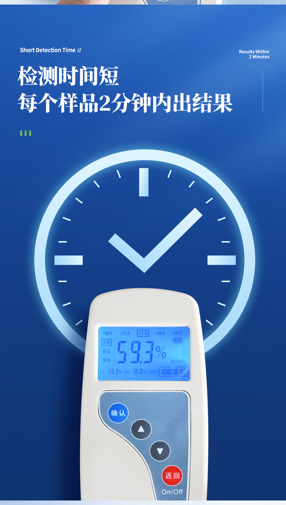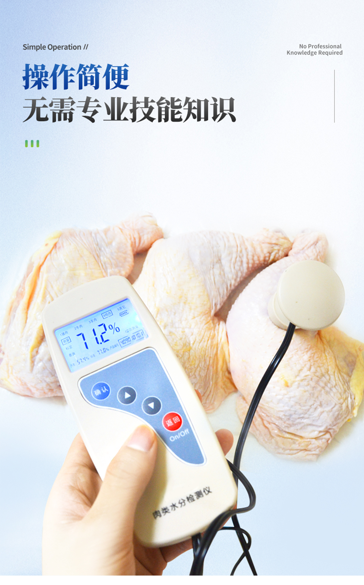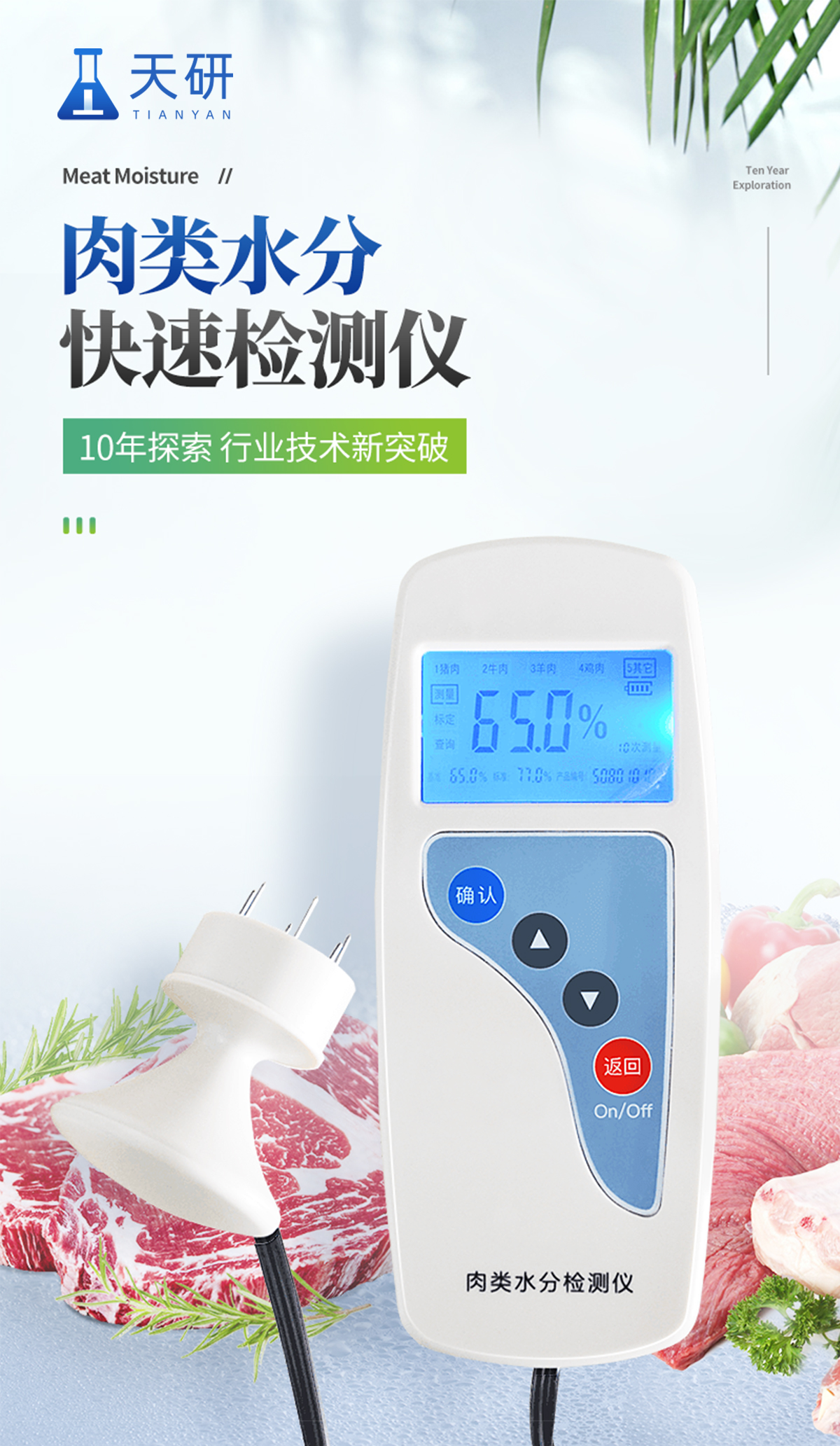 肉類水分檢測(cè)儀主要用于快速豬肉、牛肉、雞肉等動(dòng)物肉類水分含量,從而判斷所測(cè)樣品是否為注水肉,該儀器設(shè)計(jì)精巧,單手可持,儀器可根據(jù)測(cè)定對(duì)象的品種,設(shè)定相應(yīng)的判斷標(biāo)準(zhǔn)值。