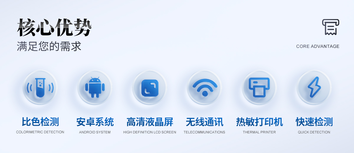 | 檢測方法:光電比色 | 測試模式:濃度 | 波長范圍:340~800nm | 系統(tǒng):安卓智能操作系統(tǒng) | 波長選擇:自動 | 顯示屏幕:3.5寸彩色液晶屏 | 穩(wěn)定性:<0.5% | 靈 敏 度(吸光度):0.001 | 使用環(huán)境:0~50℃ 0~90%的相對濕度 | 數(shù)據(jù)存儲:80000條以上 | 通訊:Type-C、WIFI、藍牙 | 電池:5600mAh鋰電池 | 連續(xù)工作時間:12小時 | 供電電壓:5V/DC直流 | 尺寸:18cm*8cm | 重量:700g | 支持語言:簡體中文或英文 |