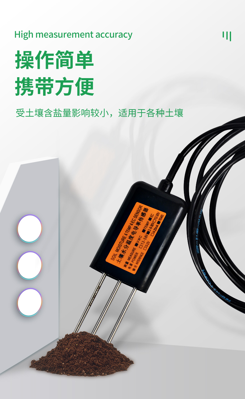 | (1)土壤含水率、電導(dǎo)率以及溫度三參數(shù)合一。 | (2)也可用于水肥一體溶液、以及其他營養(yǎng)液與基質(zhì)的電導(dǎo)率。 | (3)電極采用特殊處理的合金材料,可承受較強(qiáng)的外力沖擊,不易損壞。 | (4)完全密封,耐酸堿腐蝕,可埋入土壤或直接投入水中進(jìn)行長期動態(tài)檢測。 | (5)精度高,響應(yīng)快,互換性好,探針插入式設(shè)計(jì)保證測量**,性能可靠。 | (6)完善的保護(hù)電路與多種信號輸出接口可選。 |