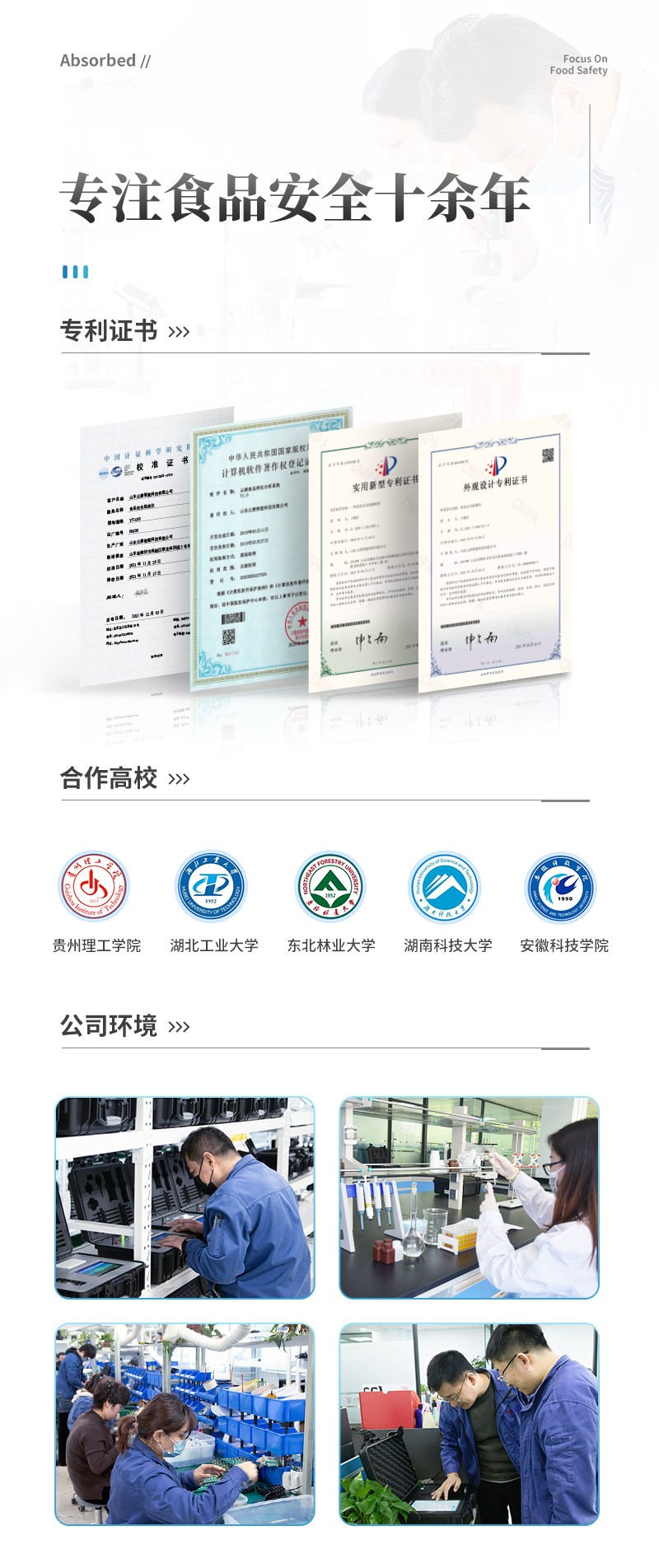 | 儀器采用臺(tái)式一體化系統(tǒng)檢測技術(shù),將分光光度模塊、新型農(nóng)殘檢測模塊、數(shù)字化管理模塊、無線通訊模塊高度集成于一體,支持檢測200種食品安全檢測項(xiàng)目,同時(shí)預(yù)留升級(jí)檢測方法。 | 儀器檢測模塊標(biāo)準(zhǔn)化、智能化,可隨意自由組合。檢測箱體內(nèi)置多個(gè)標(biāo)準(zhǔn)檢測單元,檢測模塊可以調(diào)整配置。 | 儀器采用全新安卓智能系統(tǒng),主控芯片采用 ARM Cortex-A7,RK3288/4核處理器,10.1寸高清液晶觸摸豎屏,更加**的UI交互界面,運(yùn)轉(zhuǎn)快捷;儀器配備無線通信模塊: 4G(APN)通訊模塊、Wifi模塊,藍(lán)牙傳輸,同時(shí)具有雙USB接口以及RJ45接口能以多種方式實(shí)現(xiàn)數(shù)據(jù)保存和數(shù)據(jù)傳輸功能。 | 創(chuàng)新檢測模式: | ★檢測通道:≥12通道;采用精密旋轉(zhuǎn)比色池設(shè)計(jì),使用同芯片同光源校準(zhǔn)精度,解決不同光源之間的誤差值。1-12通道間誤差0.1%。(**號(hào):ZL202022821055.2) | ★儀器具有自動(dòng)識(shí)別比色皿檢測功能,即:將樣品比色皿放入儀器后,點(diǎn)擊樣品檢測,儀器自動(dòng)識(shí)別比色皿進(jìn)行通道檢測。 | 進(jìn)口高精光源: | 高精度進(jìn)口四波長冷光源,通道配置 410、520、590、630nm 波長光源,一個(gè)光源芯片驅(qū)動(dòng)一個(gè)光源,誤差極小,每臺(tái)設(shè)備單獨(dú)**校準(zhǔn)光源,**比對(duì),同時(shí)參照四種不同波段光源全方位覆蓋市面上99%的農(nóng)殘食品項(xiàng)目檢測。 | 智能化操作系統(tǒng): | 便捷操作系統(tǒng):設(shè)備檢測時(shí)可在同一檢測界面自動(dòng)對(duì)應(yīng)相關(guān)檢測通道一次性選擇1-12個(gè)樣品名稱,無須退出界面,節(jié)省操作時(shí)間。 | 數(shù)據(jù)集成系統(tǒng):設(shè)備首頁自動(dòng)統(tǒng)計(jì)檢測數(shù)據(jù)包含:周檢測數(shù)據(jù)、月檢測數(shù)據(jù),全部檢測總數(shù)量,均包含檢測總數(shù),合格數(shù),不合格數(shù),以及相關(guān)柱形分析圖,對(duì)各項(xiàng)檢測數(shù)據(jù)清晰掌握,無需電腦查詢,更加快捷直觀。 | 項(xiàng)目預(yù)設(shè)系統(tǒng):支持添加單個(gè)及多個(gè)相同或不相同的任務(wù)預(yù)設(shè),一鍵快速調(diào)取,每一個(gè)任務(wù)分別可以設(shè)置不同的樣品、批次、編號(hào)、來源、備注、抽樣信息、檢測信息、受檢信息、復(fù)核信息等更多信息。無縫鏈接平臺(tái)和APP實(shí)時(shí)查看下發(fā)任務(wù)。 | 數(shù)據(jù)監(jiān)管系統(tǒng):同步對(duì)接監(jiān)管平臺(tái),數(shù)據(jù)可局域網(wǎng)和互聯(lián)網(wǎng)數(shù)據(jù)上傳,檢測結(jié)果可選擇直接傳至食品安全監(jiān)管平臺(tái)。集成OSS輸出存儲(chǔ)服務(wù)、區(qū)分設(shè)備定向管理應(yīng)用,進(jìn)行區(qū)域食品安全監(jiān)管及大數(shù)據(jù)分析處理與數(shù)據(jù)統(tǒng)計(jì),檢測區(qū)域食品安全長短期動(dòng)態(tài),達(dá)到食品安全問題預(yù)估、預(yù)警。 | 自定義打印系統(tǒng):內(nèi)置全新打印系統(tǒng),新創(chuàng)自定義打印方式,可按需靈活設(shè)置開啟或關(guān)閉:產(chǎn)品合格證(國家農(nóng)業(yè)部標(biāo)準(zhǔn)要求),二維碼,抽樣信息、檢測信息,受檢信息、復(fù)核信息、抽樣日期、檢測日期等信息的打印。 | 系統(tǒng)遠(yuǎn)程更新功能:可定向分客戶分儀器更新系統(tǒng),按照不同客戶后期實(shí)際需求添加項(xiàng)目,無需機(jī)器返廠,即可遠(yuǎn)程實(shí)時(shí)升級(jí)全新系統(tǒng),節(jié)省時(shí)間成本及避免運(yùn)輸造成設(shè)備損壞。 | 儀器主機(jī)采用一體化防水、抗壓、防撞擊、防腐蝕箱體設(shè)計(jì),同時(shí)配備交直流供電,可連接車載電源,可選配大容量充電鋰電池,滿足現(xiàn)場野外檢測需求。 | 安全證書,放心保障:儀器具有中國計(jì)量科學(xué)研究院校準(zhǔn)證書,**認(rèn)證。 |