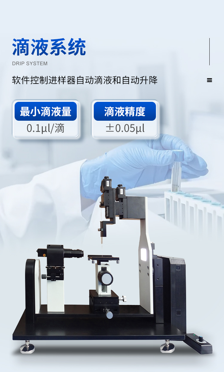 | 滴液方式:直進(jìn)式精密微量注射器 | 控制方式:手動控制 | 滴液精度:0.1 μ l | 注射器:高精密氣密性注射器 | 容量:1000 μ l | 針頭:0.51mm 全不銹鋼超疏水針頭(標(biāo)配) |