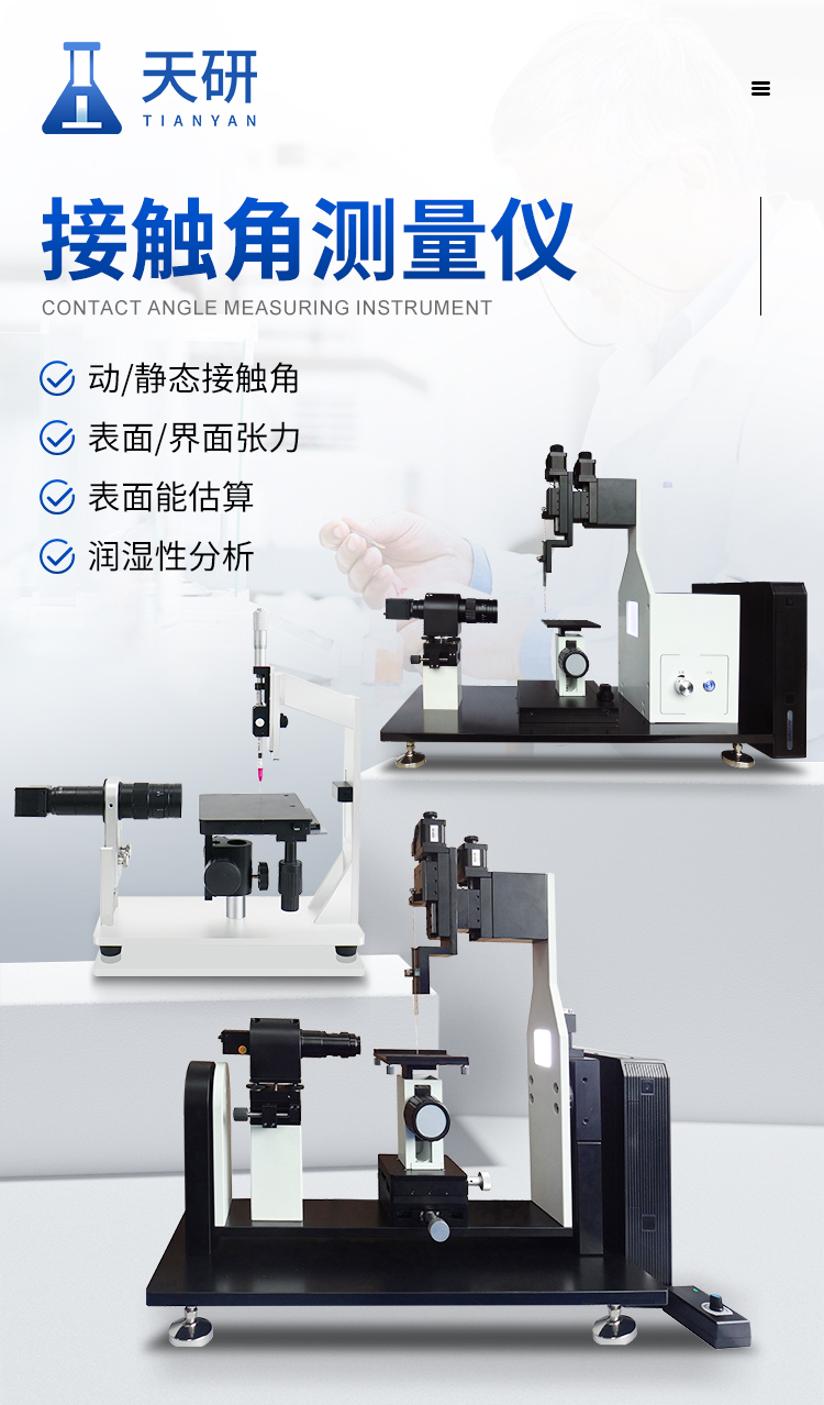 本機(jī)除了利用停滴法測試靜態(tài)接觸角外,更側(cè)重于利用傾斜板法測試和分析動態(tài)接觸角(包括前進(jìn)接觸角、后退接觸角和滾動角);同時也可以測試液體表面張力、估算固體表面能和分析潤濕性。廣泛應(yīng)用于生物化工、納米技術(shù)、涂層工藝、耐水材料、科教軍工等尖端領(lǐng)域的測試與研究。