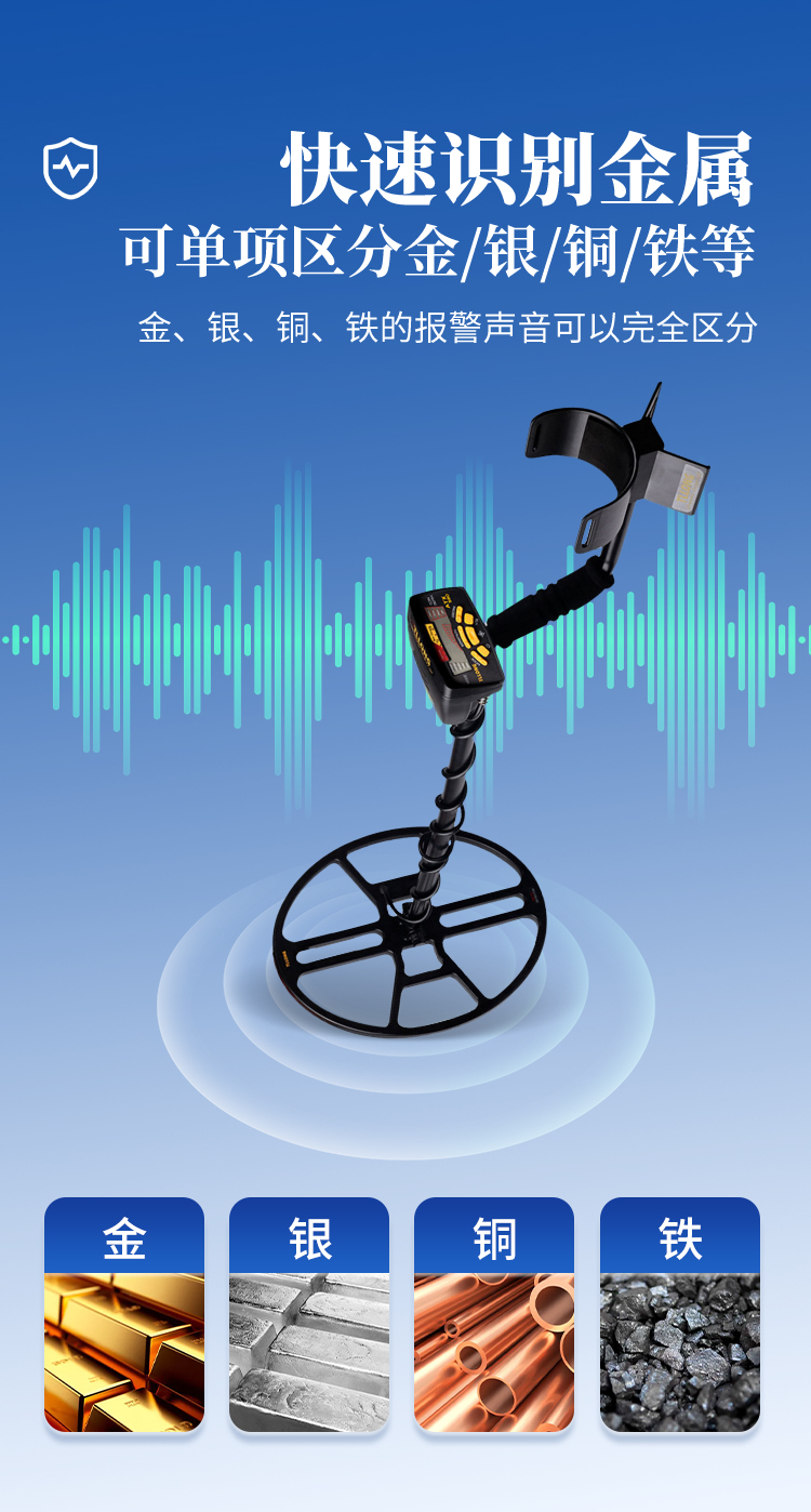 | ●外殼采用高強(qiáng)度ABS工程塑料,具有強(qiáng)度高、重量輕、壽命長(zhǎng); | ●能有效準(zhǔn)確區(qū)別黑色金屬和有色金屬功能; | ●可以排除黑色金屬(鋼鐵)只探測(cè)有色金屬(金、銀、銅) | ●設(shè)有地平衡線路,能消除“礦化反應(yīng)”帶來(lái)的影響,有效提高探測(cè)的深度及準(zhǔn)確率; | ●具有欠壓工作報(bào)警裝置; | ●采用重復(fù)的充電電池進(jìn)行工作; | ●通過(guò)喇叭或耳機(jī)識(shí)別探測(cè)金屬聲音。 |