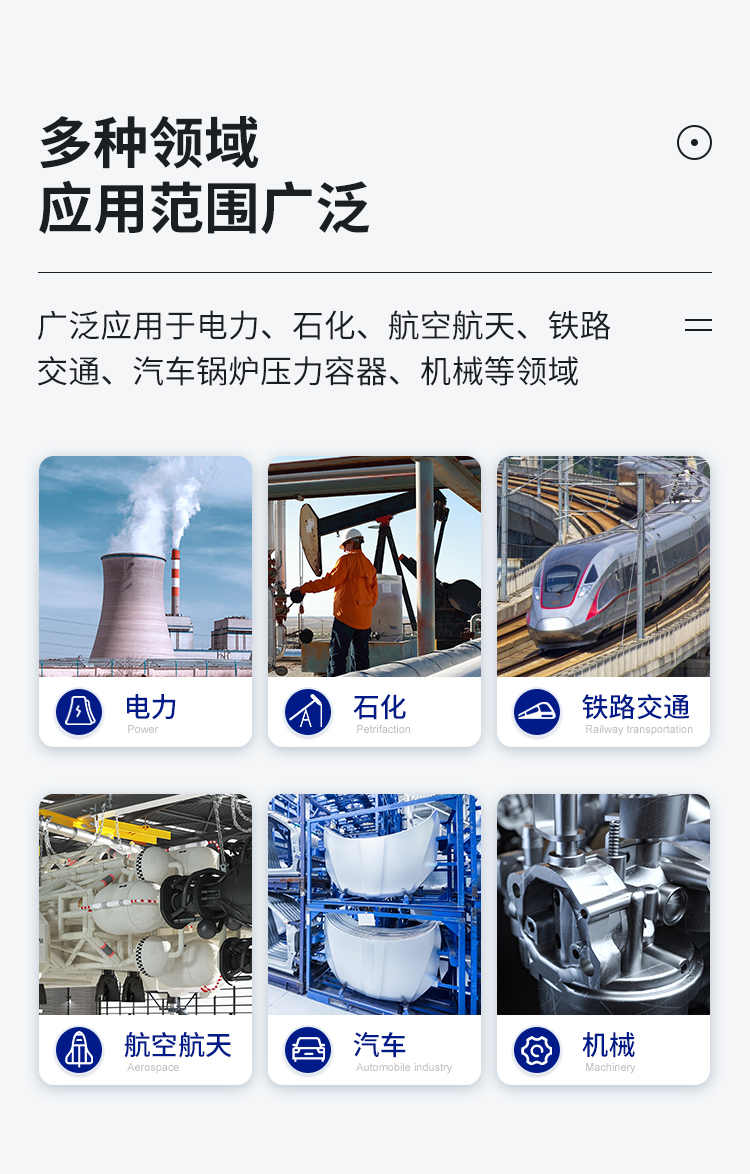 超聲波探傷儀是一種便攜式工業(yè)無損探傷儀,它能夠便攜、無損傷、準(zhǔn)確地進(jìn)行工件內(nèi)部多種缺陷(裂紋、疏松、氣孔、夾雜等)的檢測、定位、評(píng)估和診斷。既可以用于實(shí)驗(yàn)室,又可以用于工程現(xiàn)場。應(yīng)用在鍋爐、壓力容器、航天、電力、石油、化工、海洋石油、管道、船舶制造、汽車、機(jī)械制造、冶金、金屬加工、鋼結(jié)構(gòu)、鐵路交通、核能電力、高校等行業(yè)。