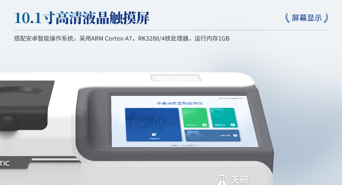 | 1. 試劑位置:3個 | 2. 農(nóng)殘檢測盤:旋轉(zhuǎn)24通道比色盤,可任意選擇檢測通道,自動對應(yīng)選擇通道。 | 3. 膠體金通道:2個,可讀取檢測卡結(jié)果,自動采集、處理分析,自動判斷檢測結(jié)果,并具備自動判空功能。 | 4.系統(tǒng)配置:10.1寸高清液晶觸摸屏,采用ARM Cortex?-A7,RK3288/4核處理器,運(yùn)行內(nèi)存1GB。Android7.1.1 系統(tǒng)分辨率1280×800。 | 5.恒溫系統(tǒng):具有自動加溫溫控系統(tǒng),精準(zhǔn)恒溫37℃,精度±0.1℃。 | 6.添加系統(tǒng):儀器按照試劑要求自動、按時、按量加入試劑,并且自動對未正常放置的樣本或異常的樣本進(jìn)行檢查并提示。 | 7.清洗功能:儀器具備回流及自動清洗管路功能,避免試劑污染。 | 8.混勻功能:設(shè)備具備自動混勻功能。 | 9.光源校準(zhǔn):設(shè)備可自動校準(zhǔn),確保檢測準(zhǔn)確度。 | 10.實(shí)時監(jiān)控:儀器測試過程中屏幕顯示運(yùn)行狀態(tài),可實(shí)時查看。 | 11.數(shù)據(jù)存儲:內(nèi)部存儲16GB,可存儲500萬條數(shù)據(jù)。 | 12.樣品多選功能:設(shè)備具備樣品一鍵多選功能,選擇樣品自動匹配檢測通道。 | 13.項(xiàng)目預(yù)設(shè):可提前設(shè)置單個及多個相同或不相同的檢測任務(wù),可單次或者多次調(diào)取,減少檢測時間。 | 14.自定義打印系統(tǒng):內(nèi)置自定義打印系統(tǒng),可按需靈活設(shè)置開啟或關(guān)閉:產(chǎn)品合格證(國家農(nóng)業(yè)部標(biāo)準(zhǔn)),二維碼,抽樣信息、檢測信息,受檢信息等信息的打印。 | 15.A4版本報告打印功能:設(shè)備可自動生成A4版報告,A4報告帶二維碼,可掃描二維碼生成電子版,并可識別真?zhèn)巍?/td> | 16.傳輸方式:儀器配備無線通信模塊: 4G(APN)通訊模塊、Wifi模塊,藍(lán)牙傳輸模塊,同時具有USB接口以及RJ45接口能以多種方式實(shí)現(xiàn)數(shù)據(jù)保存和數(shù)據(jù)傳輸功能,設(shè)備數(shù)據(jù)可以同步上傳至平臺。 | 17.系統(tǒng)17.數(shù)據(jù)監(jiān)管系統(tǒng):設(shè)備自帶監(jiān)管平臺,并可同步對接監(jiān)管平臺,數(shù)據(jù)可局域網(wǎng)和互聯(lián)網(wǎng)數(shù)據(jù)上傳,檢測結(jié)果可直接傳至食品安全監(jiān)管平臺。達(dá)到食品安全問題預(yù)估、預(yù)警。 | 18.系統(tǒng)遠(yuǎn)程更新功能:無需設(shè)備返廠,即可遠(yuǎn)程實(shí)時升級全新系統(tǒng),節(jié)省時間成本及避免運(yùn)輸造成設(shè)備損。 |