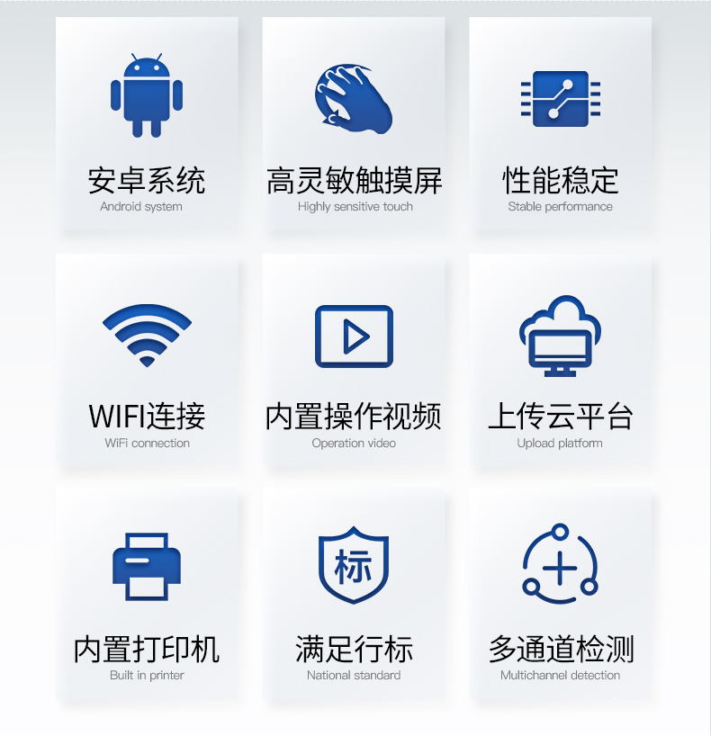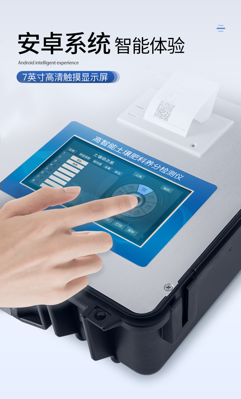 | ★1、Android安卓智能操作系統(tǒng),主控芯片采用ARM Cortex-A7,RK3288/4核處理器,主頻1.88Ghz,運(yùn)轉(zhuǎn)速度更快速,穩(wěn)定性更強(qiáng)。 | ★2、12個(gè)檢測(cè)通道,一次性可快速檢測(cè)12個(gè)樣品,極大提升檢測(cè)效率,降低檢測(cè)成本。 | ★3、采用高精度濾光片技術(shù)自主**分析方法(**號(hào):ZL 2020 2 1763837.9),**認(rèn)證。 | ★4、檢測(cè)過程中內(nèi)置校準(zhǔn)功能,智能恒流穩(wěn)壓,光強(qiáng)自動(dòng)校準(zhǔn),確保檢測(cè)準(zhǔn)確度,取得中國(guó)計(jì)量科學(xué)研究院的《校準(zhǔn)證書》。 | ★5、儀器標(biāo)配wifi無線上傳、4G聯(lián)網(wǎng)傳輸、GPRS無線遠(yuǎn)傳,快速上傳數(shù)據(jù)。 | ★6、配有智慧云農(nóng)業(yè)平臺(tái),儀器連入無線網(wǎng)絡(luò)后,可將檢測(cè)數(shù)據(jù)可選擇性或批量無線上傳,方便用戶進(jìn)行長(zhǎng)期數(shù)據(jù)管理和可視化分析。 | 7、儀器配同時(shí)具有USB接口、以太網(wǎng)接口,內(nèi)置大容量?jī)?nèi)存,并可隨時(shí)用U盤拷貝數(shù)據(jù)。 | ★8、可用手機(jī)隨時(shí)登錄云平臺(tái)在線移動(dòng)查看歷史數(shù)據(jù) | ★9、內(nèi)置作物專家施肥系統(tǒng),可對(duì)百余種全國(guó)農(nóng)業(yè)經(jīng)濟(jì)作物、果樹等的目標(biāo)產(chǎn)量計(jì)算推薦施肥量,依據(jù)施肥配方科學(xué)指導(dǎo)農(nóng)業(yè)生產(chǎn)。測(cè)土配方施肥結(jié)果可打印,打印內(nèi)容包含:作物種類、肥料種類、目標(biāo)產(chǎn)量、需求總量、建議施肥方案。 | 10、內(nèi)置植物營(yíng)養(yǎng)診斷標(biāo)準(zhǔn)圖譜,根據(jù)各農(nóng)作物營(yíng)養(yǎng)缺失的圖片,進(jìn)行葉面對(duì)比,診斷豐缺。 | ★11、4波長(zhǎng)專業(yè)測(cè)試?yán)涔庠矗t、藍(lán)、綠、橙),光源波長(zhǎng)穩(wěn)定,長(zhǎng)時(shí)間連續(xù)工作光源無溫漂現(xiàn)象,壽命長(zhǎng)達(dá)10萬小時(shí)級(jí)別,重現(xiàn)性好,準(zhǔn)確度高。 | 12、比色池部分采用標(biāo)準(zhǔn)1cm比色皿,無機(jī)械位移及磨損,光路測(cè)試定位**,有效屏蔽外光干擾,保證檢測(cè)結(jié)果優(yōu)于國(guó)標(biāo)要求。 | ★13、儀器系統(tǒng)內(nèi)帶有樣品前處理操作視頻,各種樣品檢測(cè)方法點(diǎn)擊視頻模塊即可觀看,檢測(cè)人員無需自學(xué)說明書,指導(dǎo)教學(xué)方便快速,方便新手快速操作。 | 14、內(nèi)置新一代高速熱敏打印機(jī)(無需色帶),打印內(nèi)容包含:檢測(cè)單位、檢測(cè)人員、檢測(cè)項(xiàng)目、通道號(hào)、吸光度、養(yǎng)分含量(mg/kg)、檢測(cè)時(shí)間、以及二維碼等信息 | ★15、高靈敏7寸真彩觸摸屏,采用更加**和人性化操作,高清晰高交互顯示,大程度降低傳統(tǒng)儀器的繁瑣操作和失誤,并取得多項(xiàng)《軟件著作權(quán)》。 | 16、內(nèi)置時(shí)鐘功能,方便操作時(shí)間記錄,長(zhǎng)期歷史追溯。 | 17、可設(shè)置多賬戶賬號(hào)密碼登錄,**UI交互界面,不同的用戶可自由添加編輯檢測(cè)信息,保存后可長(zhǎng)期使用。 | 18、GPS功能:可在野外作業(yè)時(shí)記錄經(jīng)緯度地點(diǎn),滿足特殊用戶需求。 | 19、內(nèi)置低電壓提示功能,可在檢測(cè)時(shí)明確電量,避免測(cè)試數(shù)據(jù)偏移,同時(shí)具有斷電保護(hù)功能,斷電自動(dòng)保存數(shù)據(jù),防止數(shù)據(jù)丟失。 | 20、交直流兩用供電方式,內(nèi)置大容量充電鋰電池,滿電狀態(tài)下可連續(xù)工作10余小時(shí),同時(shí)可外接車載電源蓄電。 | ★21、儀器具有中英文切換功能,可滿足出口要求。 | 22、高強(qiáng)度PVC工程塑料手提箱設(shè)計(jì),堅(jiān)固耐用,便于攜帶。 |