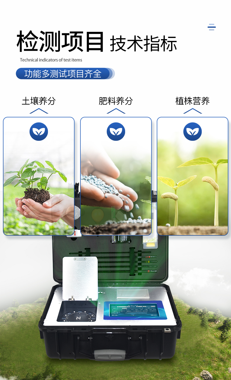 產(chǎn)品簡(jiǎn)介:配套齊全:該儀器集藥、器、儀為一體,攜帶方便,相當(dāng)于一個(gè)小型移動(dòng)實(shí)驗(yàn)室,無需用戶自配附件,亦可靈活野外流動(dòng)測(cè)試。適于農(nóng)業(yè)服務(wù)部門或農(nóng)資經(jīng)銷商、合作社、肥料廠商、大種植戶測(cè)土施肥和鑒別肥料真假。檢測(cè)功能全:測(cè)試項(xiàng)目國(guó)內(nèi)外全面,除標(biāo)配試劑外,其他各類藥劑均可加配選購(gòu)。操作簡(jiǎn)便、速度快捷,配套整