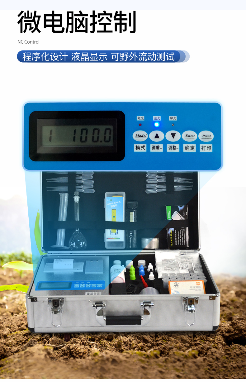 | 配套齊全:該儀器集藥、器、儀為一體,攜帶方便,相當(dāng)于一個(gè)小型移動(dòng)實(shí)驗(yàn)室,無需用戶自配附件,亦可靈活野外流動(dòng)測(cè)試。適于農(nóng)業(yè)服務(wù)部門或農(nóng)資經(jīng)銷商、高教院校、科研院所、合作社、肥料廠商、大種植戶測(cè)土施肥和鑒別肥料真假及環(huán)保檢測(cè)應(yīng)用。 | 檢測(cè)功能全:測(cè)試項(xiàng)目國(guó)內(nèi)外全面,除標(biāo)配試劑外,其他各類藥劑均可加配選購(gòu)。 | 操作簡(jiǎn)便、速度快捷,配套整套附件及成品藥劑開瓶即用,無須配置。 | 性能可靠:工作穩(wěn)定性優(yōu)于國(guó)家標(biāo)準(zhǔn)JJG179-90指標(biāo)的6倍,重復(fù)性達(dá)到光柵型分光光度計(jì)指標(biāo)水平。 |