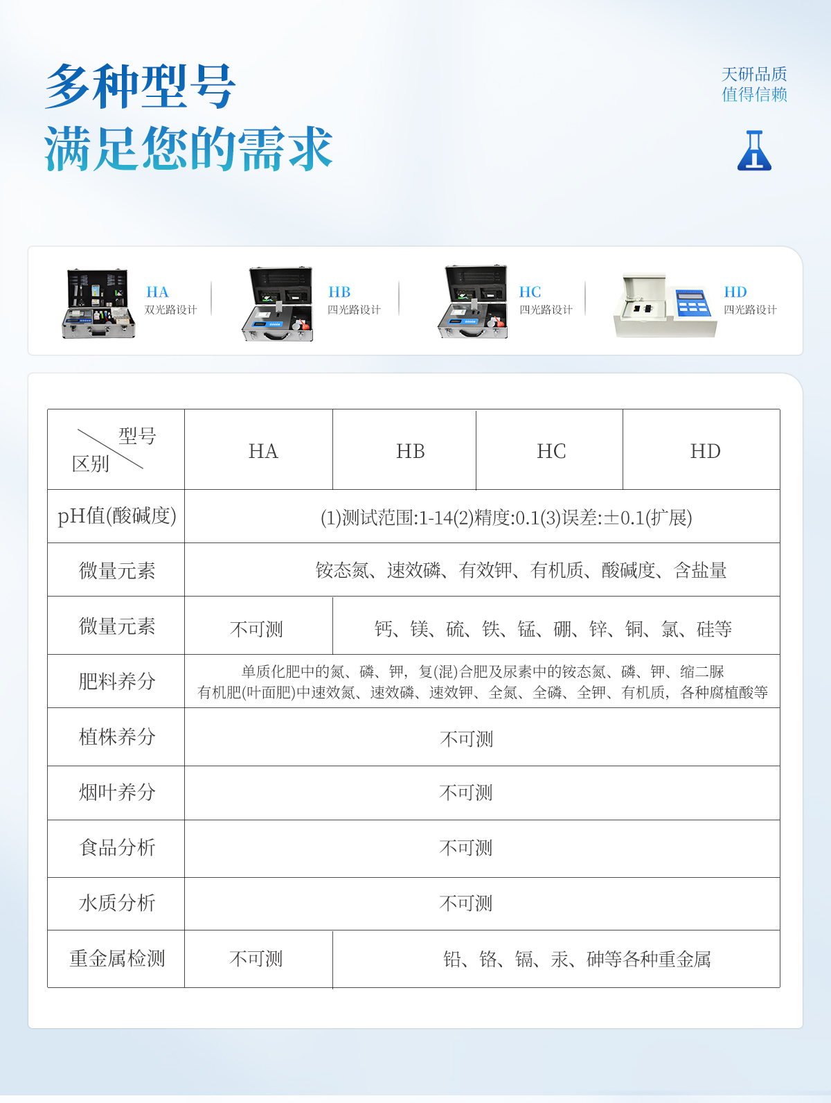 | 復(fù)合肥養(yǎng)分含量檢測(cè)儀功能全:測(cè)試項(xiàng)目國(guó)內(nèi)外*全(各類藥劑均可選購(gòu))。 | 配套齊全:該儀器集藥、器、儀為一體,攜帶方便,相當(dāng)于一個(gè)小型實(shí)驗(yàn)室。適于農(nóng)業(yè)服務(wù)部門或農(nóng)資經(jīng)銷商、肥料廠商測(cè)土施肥和鑒別肥料真假。 | 操作簡(jiǎn)便、速度快捷,成品藥劑開(kāi)瓶即用,無(wú)須配置。 |