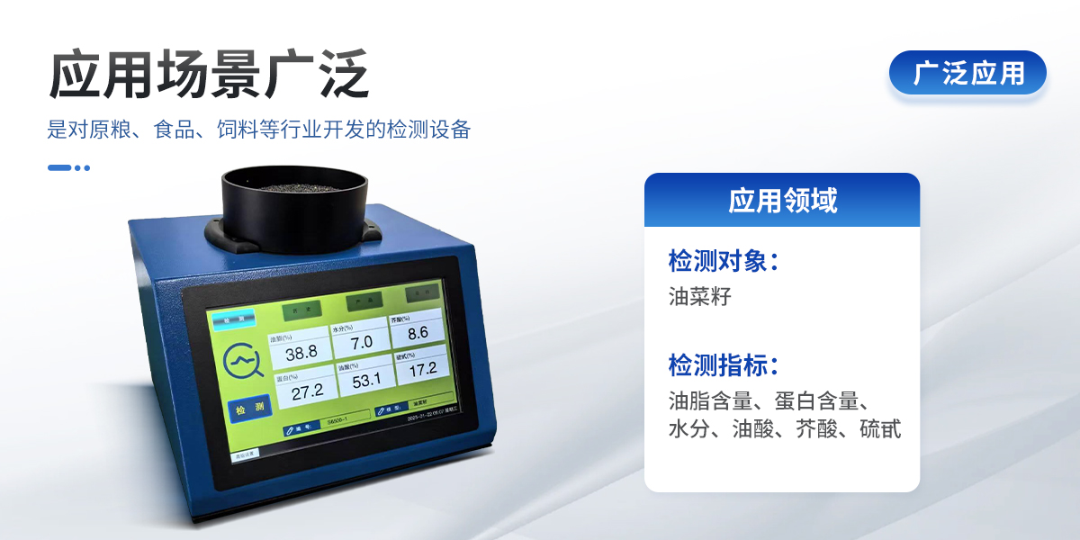近紅外油菜籽檢測儀,是針對原糧、食品、飼料等行業(yè)開發(fā)的專用 檢測設(shè)備,可無損、快速、準(zhǔn)確地檢測樣本的水分、脂肪、蛋白質(zhì)等多種指標(biāo)。