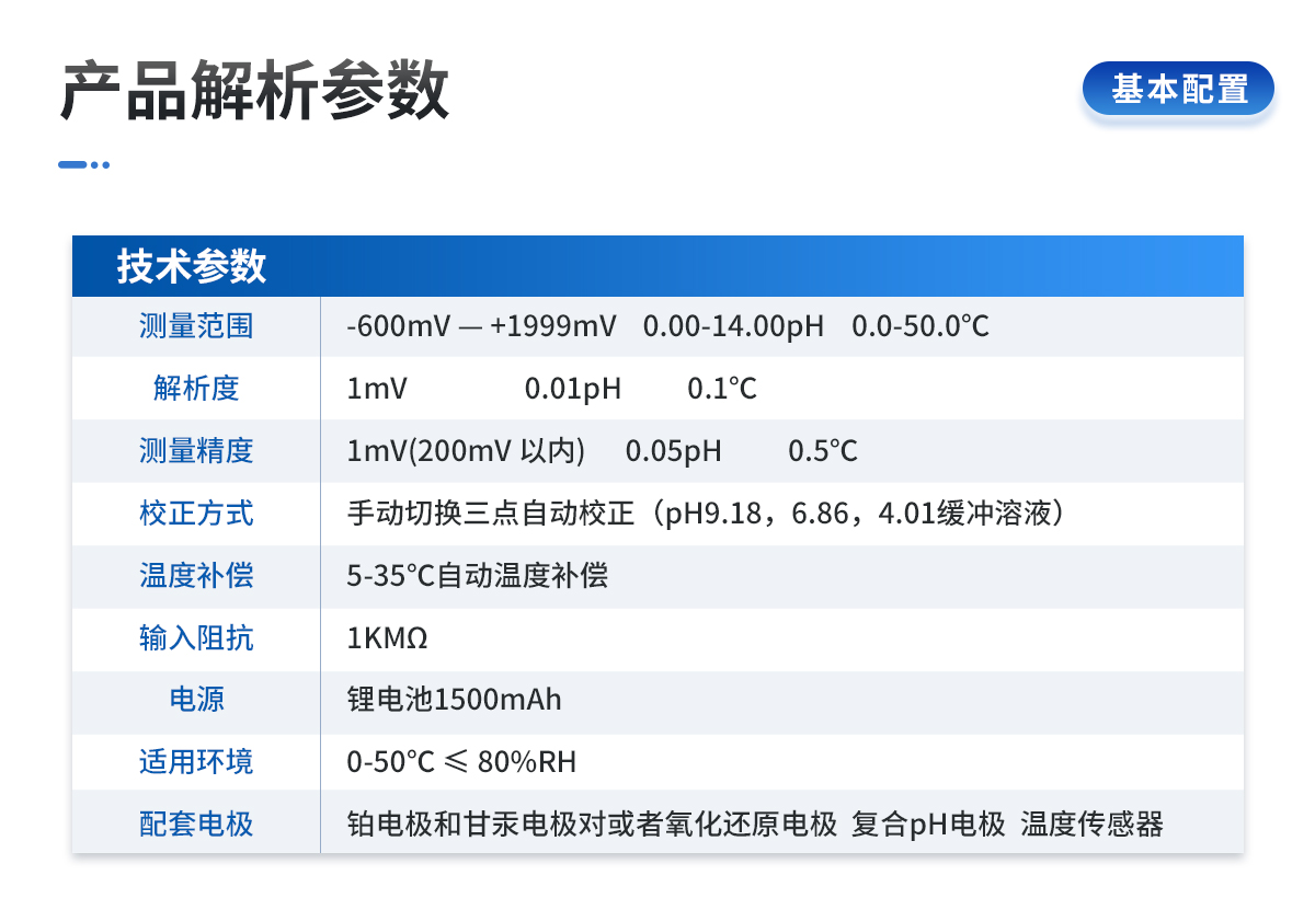 | 測量范圍:-600mV — +1999mV 0.00-14.00pH 0.0-50.0℃ | 解 析 度:1mV 0.01pH 0.1℃ | 測量精度:1mV(200mV 以內(nèi)) 0.05pH 0.5℃ | 校正方式:手動切換三點自動校正(pH9.18,6.86,4.01緩沖溶液) | 溫度補償:5-35℃自動溫度補償 | 輸入阻抗:1KMΩ | 電 源:鋰電池1500mAh | 適用環(huán)境:0-50℃ ≤ 80%RH | 配套電極:鉑電極和甘汞電極對或者氧化還原電極 復合pH電極 溫度傳感器 | 電 源:4×12V AA電池,連續(xù)工作時間大于20小時 | 測量時間:30-45min | 儀器尺寸:200×85×40 | 重 量:500g |