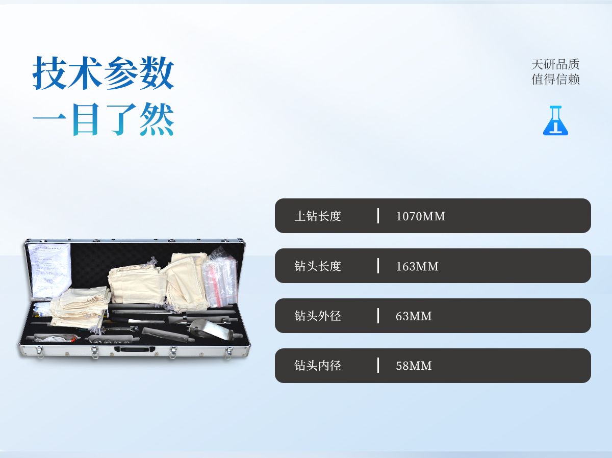 | 規(guī)格:標(biāo)準(zhǔn)配置采樣深度2米,詳細(xì)參數(shù)見(jiàn)下 | 特點(diǎn):可在不同土壤質(zhì)地采樣、拆卸方便、體積小便于戶外攜帶 | 用途:在土壤采樣過(guò)程中,會(huì)遇到不同土壤質(zhì)地,比如:粘土、壤土、沙土和泥炭土。為了達(dá)到更好的采樣效果,應(yīng)該根據(jù)不同土壤質(zhì)地,選擇合適的鉆頭?,F(xiàn)提供以下四種鉆頭,可以采集不同質(zhì)地土壤表層0-20cm的樣品,也可用于深層采樣。 | 標(biāo)準(zhǔn)配置:心型黏土鉆1個(gè)、心型壤土鉆1個(gè)、心型沙土鉆1個(gè)、筒型泥炭鉆1個(gè)、100cm延長(zhǎng)桿2個(gè)、50cm延長(zhǎng)桿1個(gè)、T型手柄1個(gè)、刮刀1把、扳手2個(gè)、3米鋼卷尺1個(gè)、手套1副、鋁箱包裝。 |