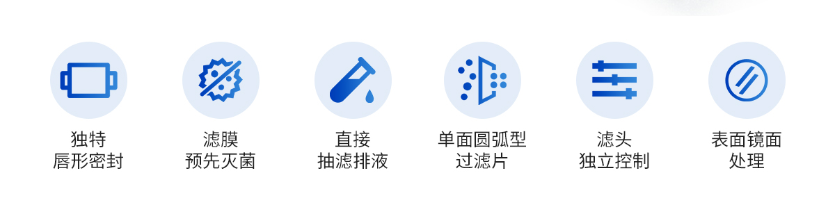 | 1.過濾杯采用獨特的唇形密封設計,不使用夾鉗和 O 型圈,確保無泄 漏操作和均勻的微生物回收率 2.濾膜預先滅菌,即拆即用,可將主要污染物源降到**,提高檢測可靠性 3.直接抽濾排液,無需抽濾瓶,安裝使用方便 4.內置進口隔膜液泵,效率更高 5.小巧的機身,減少對操作臺面積的占用 6.防水開關 簡潔方便 7.三聯(lián)過濾頭設計,可同時抽濾,提高工作效率,每個濾頭也可獨立控制,方便操作人員靈活使用 8.過濾頭可快速拆裝,能單獨濕熱滅菌 9.過濾頭可以火焰快速滅菌,方便連續(xù)實驗操作 10.采用單面圓弧型過濾片,方便更換 11.儀器表面經鏡面處理,便于清潔和消毒 12.濾杯采用可重復使用材料設計,經久耐用,節(jié)省成本,操作方便 |