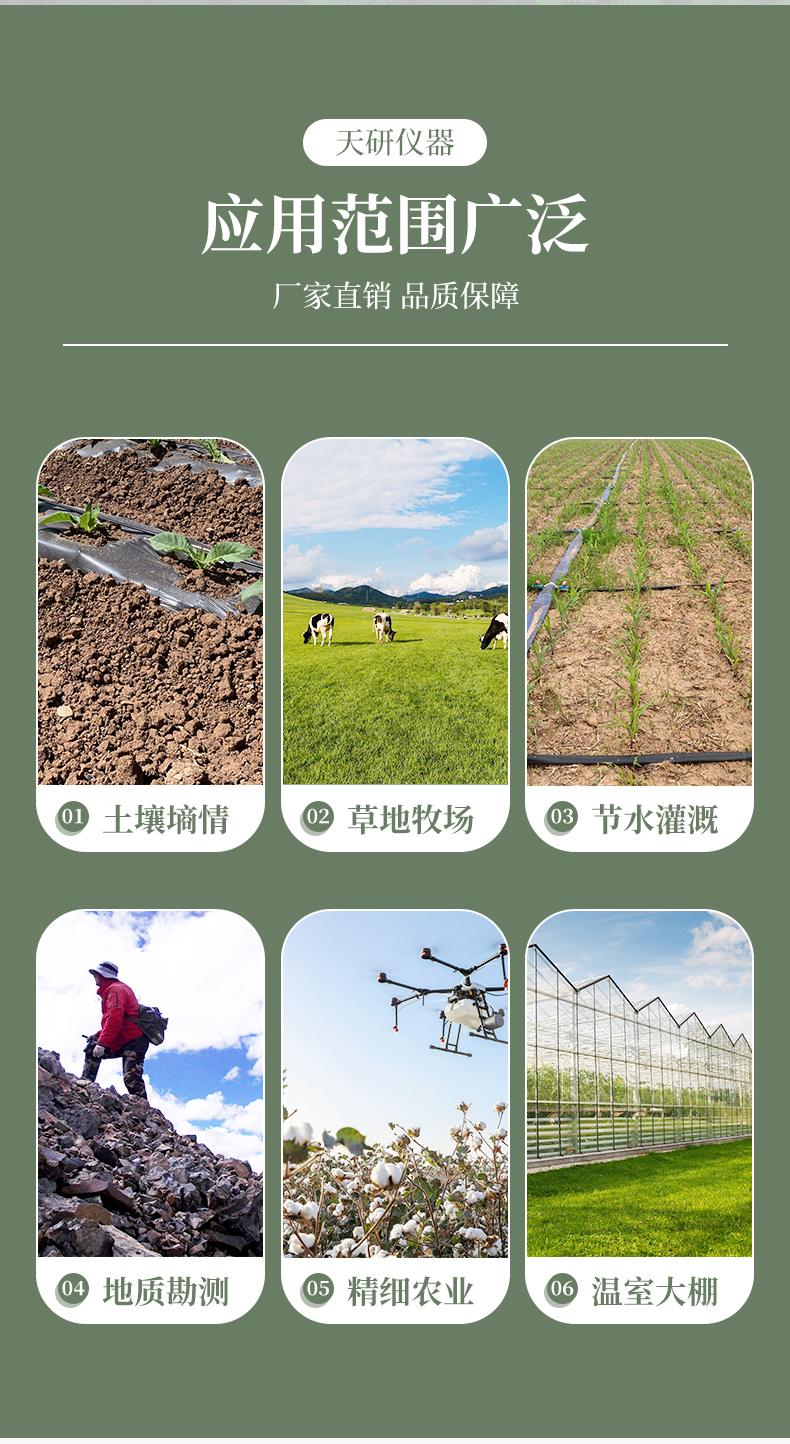 土壤水分溫度鹽分測定儀傳感器采用一體化結(jié)構(gòu)設(shè)計,可快速準(zhǔn)確測量土壤中含水量、溫度和電導(dǎo)率(鹽分),可對多處樣地、不同土壤深度的水分含量溫度和鹽分進行快速檢測和長期連續(xù)監(jiān)測。廣泛應(yīng)用于土壤墑情檢測、旱作節(jié)水灌溉、精細農(nóng)業(yè)、林業(yè)、地質(zhì)勘探、植物培育、水利、環(huán)保等領(lǐng)域。